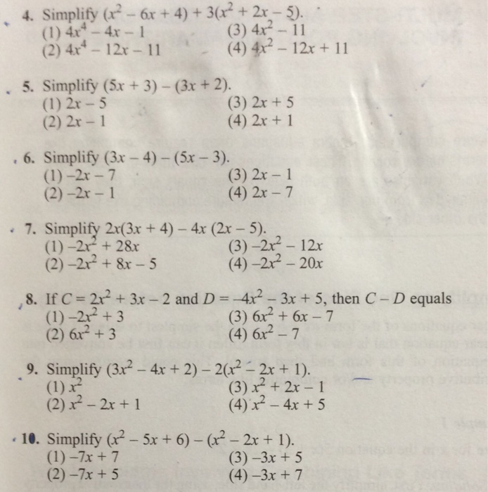 Solved 4. Simplify( 6x + 4)32+2-5. (1)4x4-4x 1 (2) 4r- 12x | Chegg.com